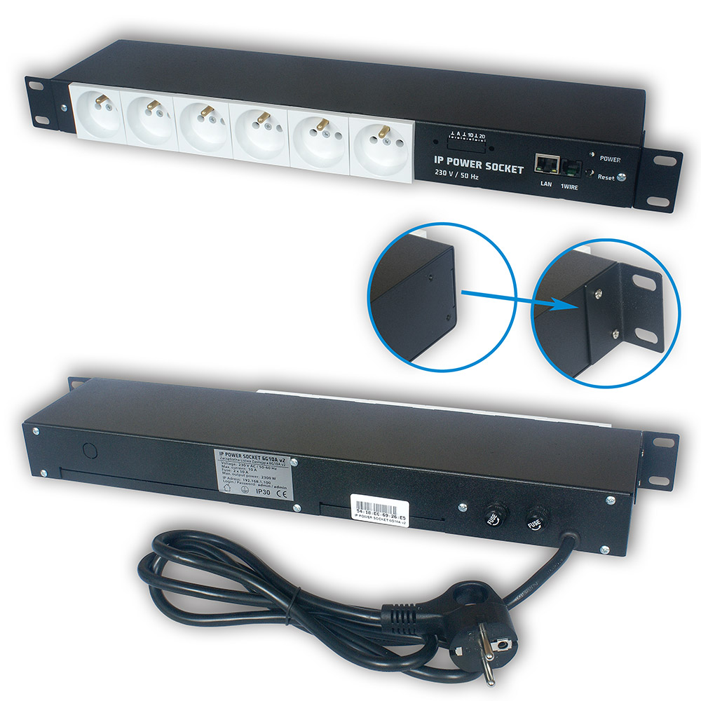 Rack 19-inch power strip, equipped with 6 independently managed 230V sockets. The board can be managed via the built-in web server or SNMP protocol.