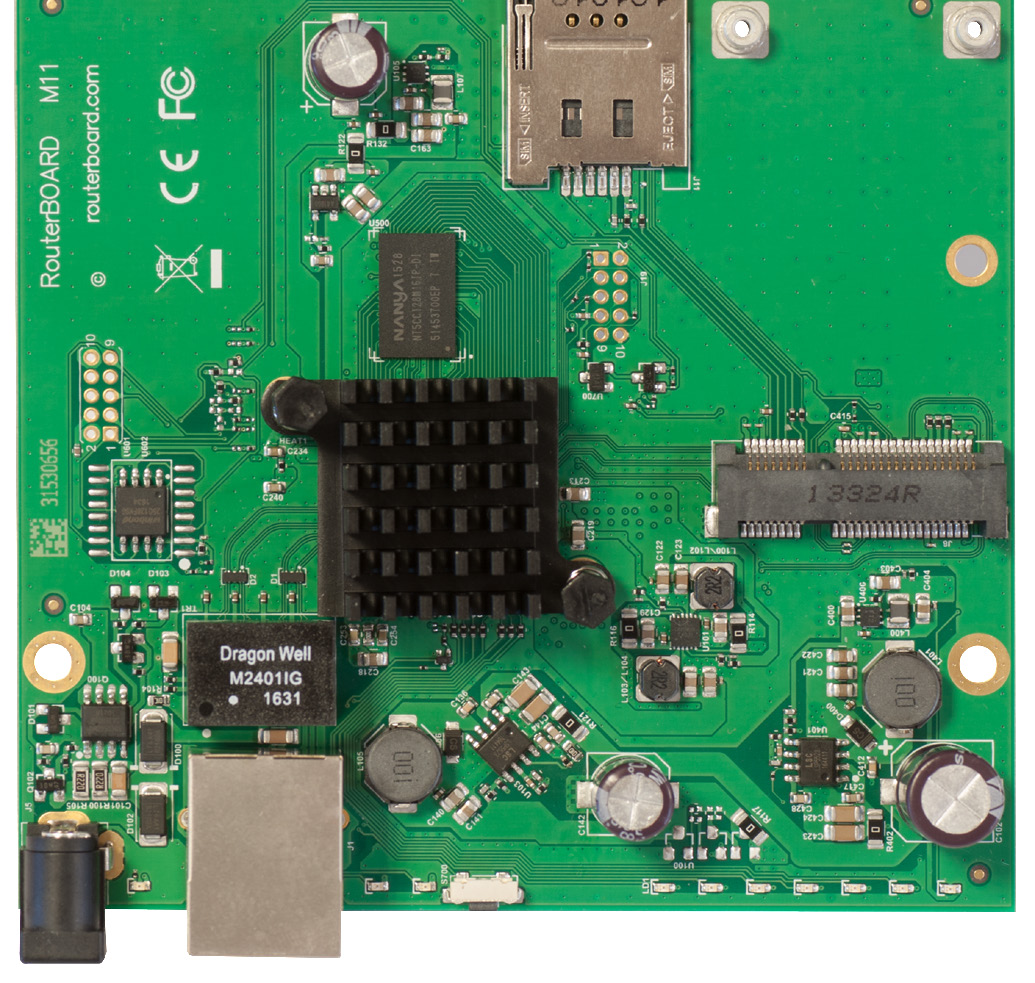 The M11 is a fully featured RouterBOARD device perfect for using with your own enclosure or building a custom solution. It uses the same square PCB and mounting holes as it’s predecessors, you can simply swap out the older models with the brand new M11.