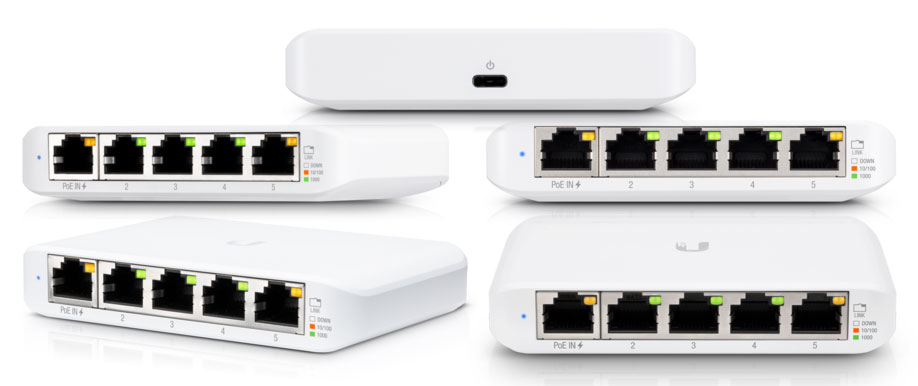 The USW-Flex-Mini is a Compact 5-Port Gigabit Switch. Build and expand your network with the UniFi® Switch, part of the Ubiquiti Networks® UniFi Enterprise System. The UniFi Switch, model USW-Flex-Mini, is a smart managed Gigabit switch. It offers 5 RJ45 Ethernet ports, providing 1 Gigabit links to your devices. Power up the USW-Flex-Mini with the included USB Type-C power adapter or with 802.3af PoE Ethernet in port 1.